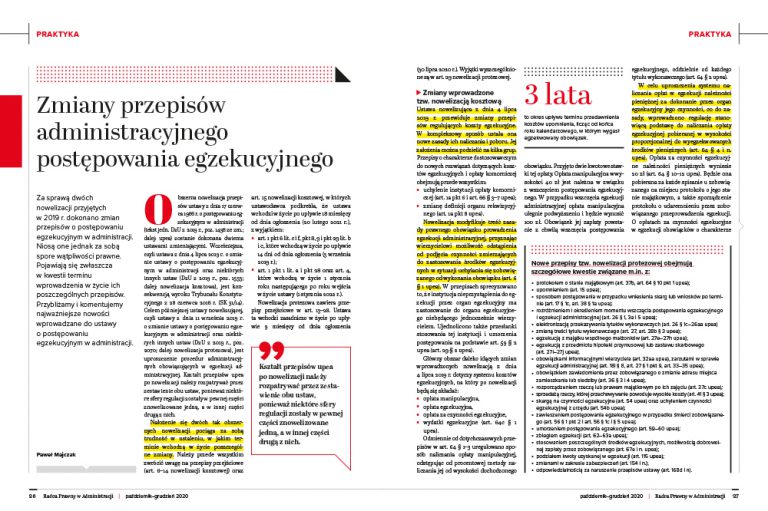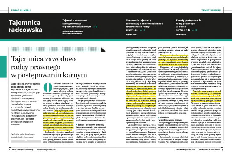 „Radca Prawny w Administracji” to pismo dla prawników zatrudnionych w jednostkach sektora finansów publicznych lub obsługujących podmioty publiczne, a także wszystkich kierowników i dyrektorów administracyjnych w instytucjach państwowych i samorządowych. Skupiamy się na najważniejszych kwestiach prawnych, które stają się przedmiotem ich pracy.